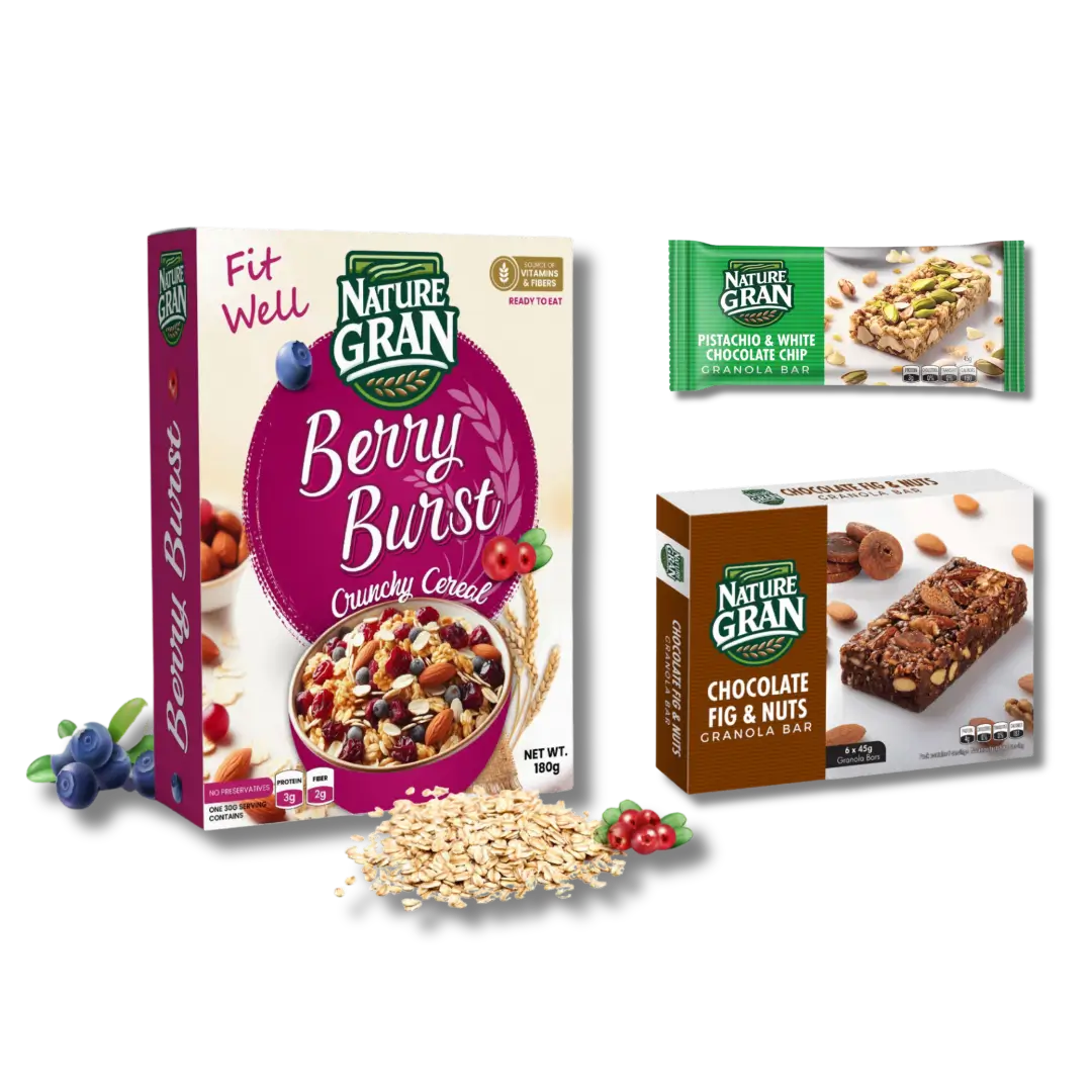 One 180g Cereal, Box of 6 x 45g Granola Bars, One 45g Granola Bar free.